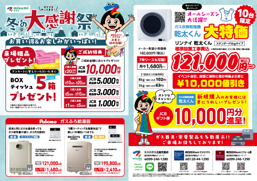 12月はミスミガスとの合同イベント冬の大感謝祭を開催します。